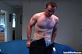 James is a life-long wrestler and says he keeps in shape by hitting the gym every day. At 4am. He's 21y/o and str8, into some pretty typical str8 guy stuff like building off-road trucks and paintball.