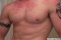 Scott is one hot dude to watch in general, but in this shoot the intensity builds and builds. By the end, he's jumped up on his knees, covered in sweat and flushed red as he shoots a load out onto the bed. Whew!