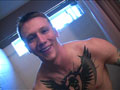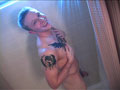 After blowing his wad, Colby headed off to the shower. He was one sweaty, sticky mess.