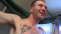 Between Lance's two cumshots in his solo debut, he wanted to rinse the jizz off his stomach.